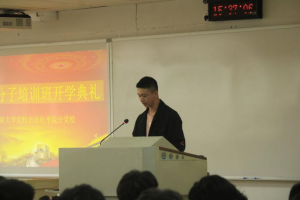 2020年10月11日下午15:30,中南党校九游会 分党校积极分子培训班开学典礼在科教南楼305顺利召开。本次开学典礼旨在提升积极分子的思想站位,明确学习要求与目标,动员积极分子在任何时候都以党员的标准严格要求自己。开学典礼由培训班班导师刘海澍老师主持。九游会 党委副书记、九游会 分党校副校长黄亚老师出席本次开学典礼。开学典礼共四项议程。首先是全体起立歌唱国歌。 唱国歌 积极分子代表谢彪发言第二项内容是...