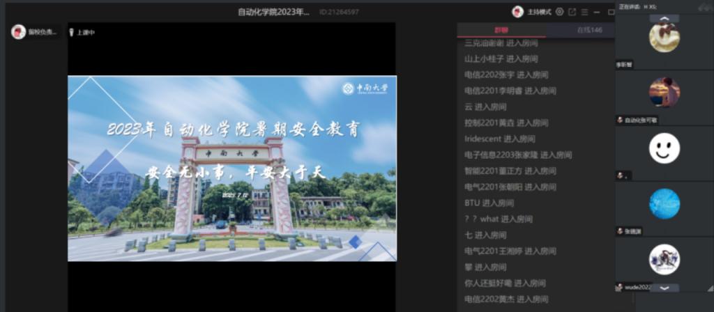 7月12日,九游会 2023年暑期留校学生安全教育线上会议顺利举行,九游会 副院长王雅琳教授、九游会 党委黄亚副书记出席本次会议,各年级辅导员及全体留校学生参加会议,会议由九游会 留校负责老师候晓双主持。九游会 开展暑期留校学生线上安全教育会议伊始,安全专干朱家明老师讲解暑期安全工作注意事项。朱老师从财务安全、交通安全、实验室安全、寝室安全、防溺水安全、食品安全六个方面对大家进行安全警示教育,提醒大家牢固树立“安全...