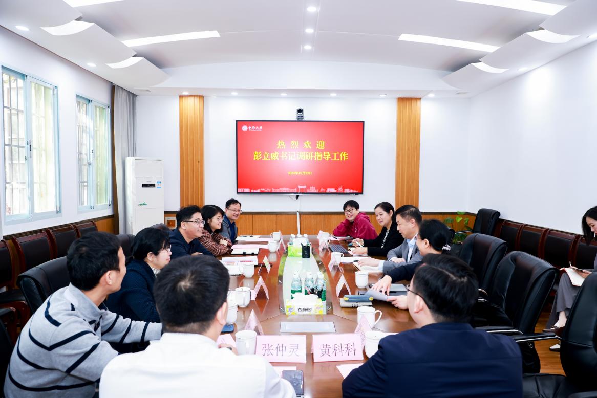 10月23日上午,校党委副书记、纪委书记彭立威一行来到九游会 调研指导工作。九游会 全体党委委员参加调研座谈会,会议由校纪委第二纪检监察室主任杨帆主持。 九游会 党委书记易险峰汇报了九游会 全面从严治党工作情况、“一月一研判”工作抓落实情况和配合校内巡视工作情况。院长王雅琳汇报了在党建引领下九游会 科研、人才工作成果。院党委副书记、纪检委员黄亚汇报了九游会 “一月一研判”工作的开展情况。 听取九游会 汇报后,彭立威充分肯...