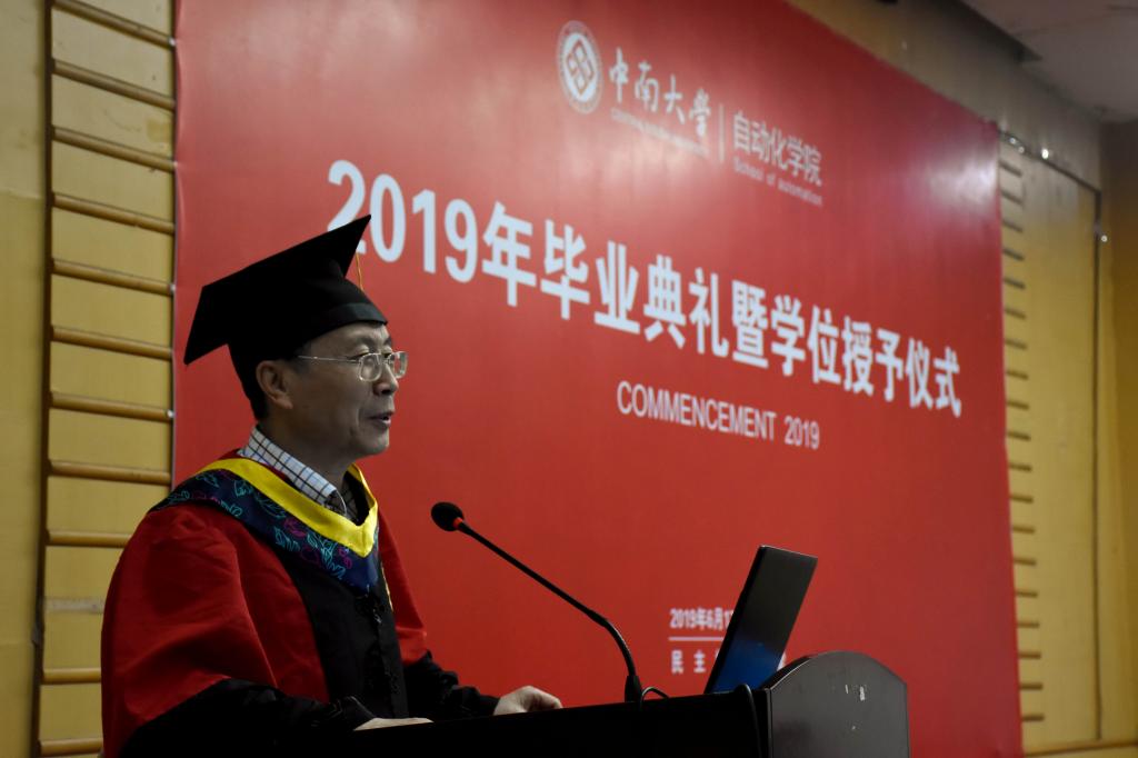 的经历在心中留下很深的记忆,总结这段经历,最大的影响就是“求实”二字。希望同学们在今后的道路中“老老实实为人,踏踏实实做事”,在不同的岗位上努力奋斗,不只在乎结果,而是在过程中尽自己最大的努力,为国家做出贡献,为国家的发展尽自己的努力,努力就是成功。阳春华院长对毕业生们表达了真挚的祝贺同时也提出了三点要求,第一是要求同学们要热爱伟大祖国,勇担时代责任。第二要牢记“知行合一,经世致用”,发扬中南品格。第三要增强学习紧迫感,保持终身学习的好习惯。董密老师也热情地祝贺大家顺利毕业,她肯定了同学们奋发向上、勇于担当的精神面貌。也给予同学们在开始新的人生征程时要坚持学习,永怀梦想,简单做人、踏实做事的人生建议。
