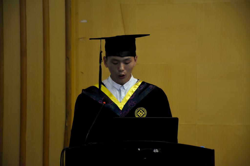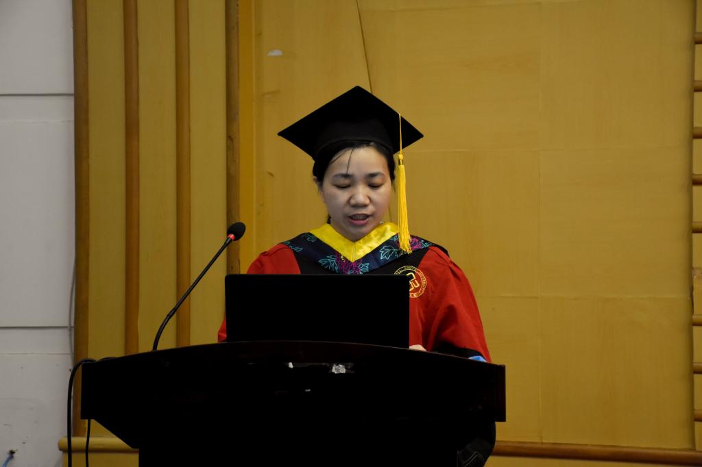 2019年共授予博士、硕士和学士学位近700人。毕业生代表张俊俊同学结合自身丰富多彩的大学生活经历进行了毕业生代表发言,表达了对母校的感激与不舍也展望了未来的目标与理想。