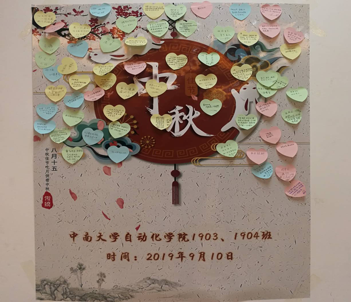 带班学姐学长们为同学们精心准备了月饼,大家一起写下中秋祝愿,贴在心愿墙上并合影留念。同学们纷纷感谢班导黄亚老师和带班学长学姐的精心准备,给了大家巨大惊喜。这是同学们进入中南后的第一个团圆佳节,在新的大家庭度过这个节日意义非凡,在老师和学姐学长的关爱下,同学们对未来的集体生活充满期待。