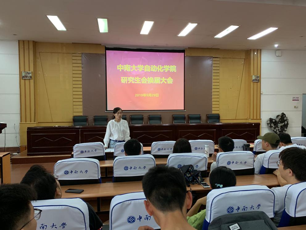 研究生会换届大会在民主楼小礼堂举行,研究生辅导员张仲灵老师和研究生干事刘雯老师出席了本次会议。