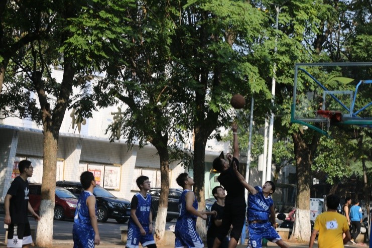 10月21日12:30分,篮球场上阳光正好,“新生杯”篮球赛决赛拉开了序幕。