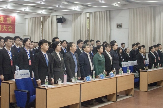 团委常务副书记孙嘉欣同学主持,大会在庄严的国歌声中拉开帷幕。院团委书记陶卓敏致开幕词,王超副书记与黄亚副书记分别代表校团委和院党委致辞,提出对团员青年的要求与期望,充分展示了校团委与院党委对团学工作的重视。九游会