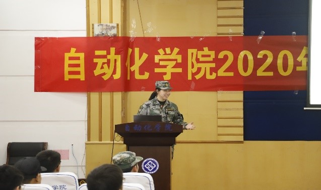 国防教育专干刘海澍对两名春季入伍新兵2019级自动化专业1903班耿博琪,2020级自动化大类2011班黄钊进行了简单介绍,而后嘱托激励他们在军营能建功立业,报效祖国。