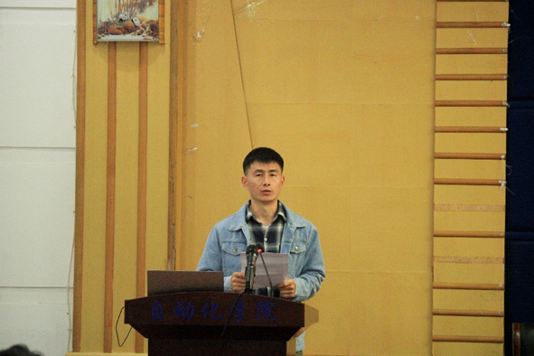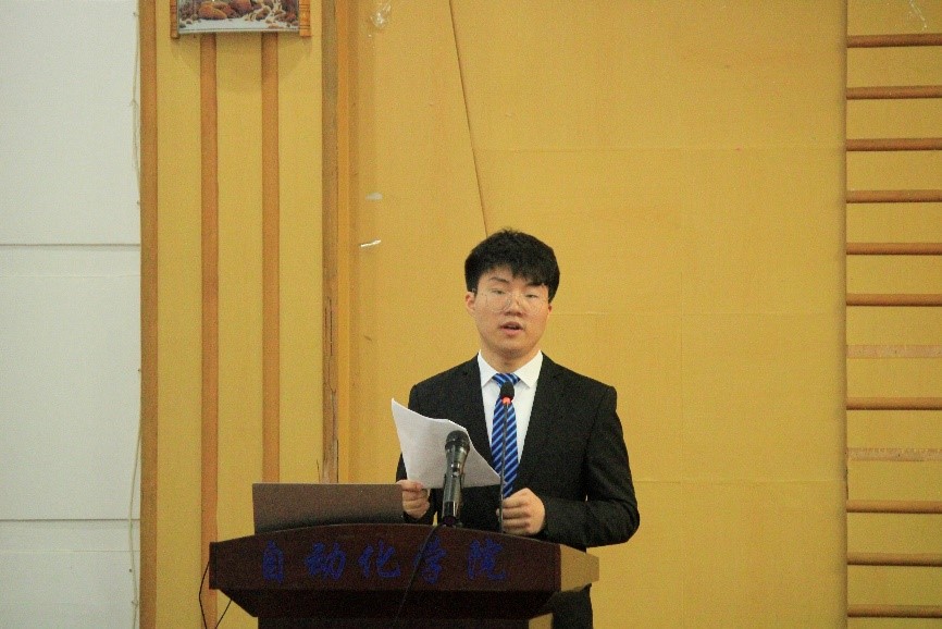 接下来是2019级硕士彭帆作为第12期发展对象学员代表上台发言。他回顾了自己为成为发展对象所付出的努力,并且呼吁学员们认真学习党的相关理论知识,端正思想与入党动机,向优秀先辈们看齐,为成为一名合格的共产党员而奋斗。