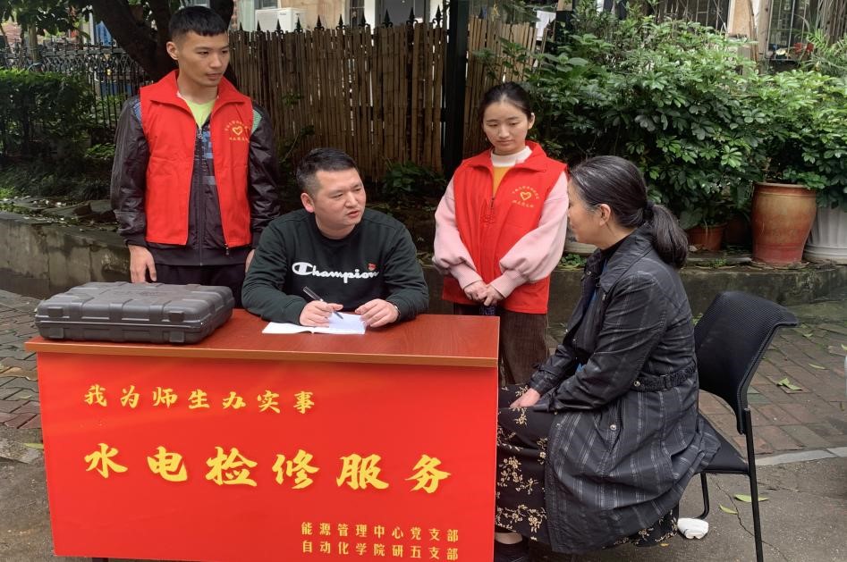 此次活动分成三个部分,分别为水电检修服务、上门为群众送温暖、清理楼栋“牛皮癣”。活动内容之一是水电检修服务。即在高家坪4栋楼旁设立了简易检修登记点,群众在能源管理中心和研五支部党员同志的引导下进行了检修登记,包括楼栋信息和水电设施存在问题等,随后能源管理中心将安排人员进行上门服务。