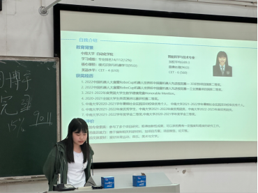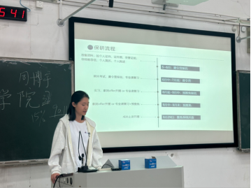 的熊蓉琪同学在已分享经验的基础上,补充介绍了保研需要的简历、自我介绍、英语面试等材料的准备技巧,分享了自身直博经验,并鼓励大家充满自信,勇于在面试中展现自己。