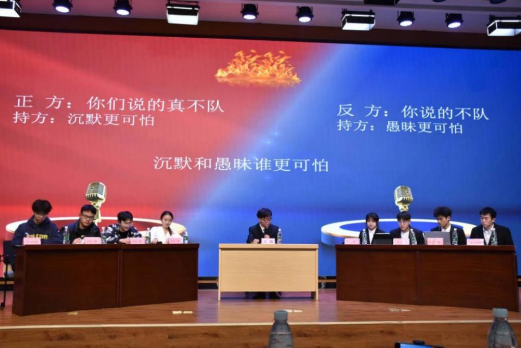 本次辩论赛决赛的辩题是“沉默和愚昧谁更可怕”,正方“你们说的真不队”与反方“你说的不队”展开了激烈的碰撞。正方认为,沉默促进了恶的生长,且沉默者拒绝交流,难以改变,而愚昧可以通过学习教化改变。反方则认为,沉默虽不能解决问题但也不会使事物向更坏的方向发展,而愚昧则会助长邪恶。双方陈词有力,引经据典,同时用犀利的发问进行质询,切中对方的要害,论证己方的观点。比赛也在双方选手的你来我往、针锋相对中达到高潮。