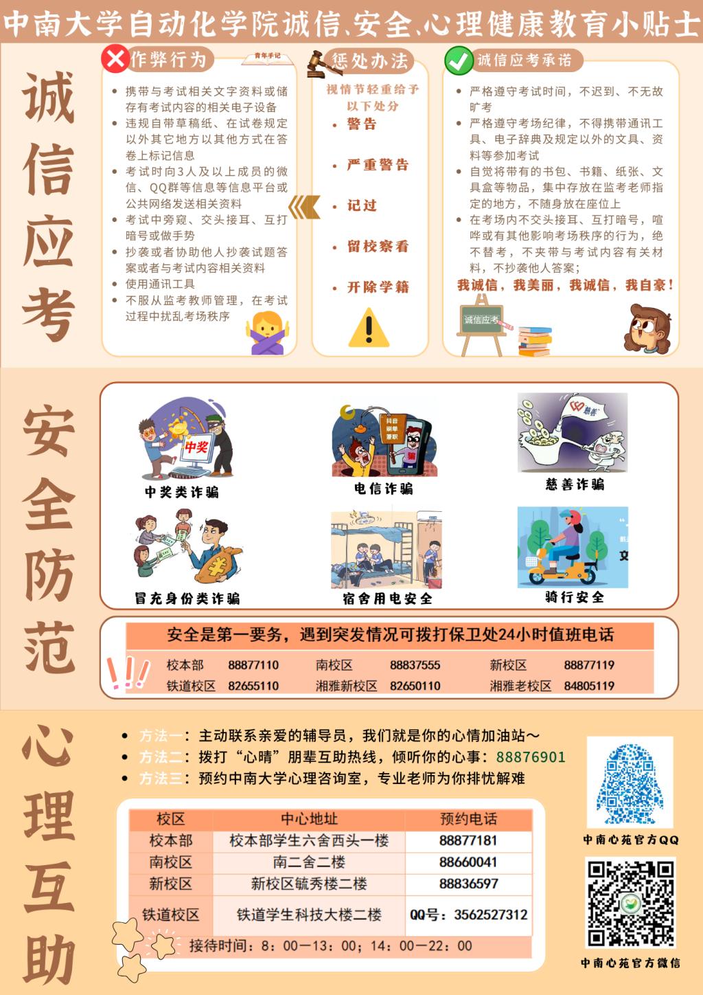 此外,各年级及时开展诚信、安全和心理教育年级大会、主题班会,提醒同学们养成诚实品质、提高安全和心理互助意识,涵养优良学风,筑牢安全防线。