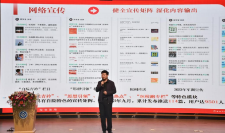 团委书记刘乐老师代表团委各部门作总体述职报告。报告围绕“进前而勿顾后”的主题,从思想引领、实践与竞赛、志愿服务、双创实践与网络宣传五个方面,整体梳理了团委各部门过去半年来的各项工作成果。他强调,在未来,团委各部门将继续以思想引领为核心,以更加饱满的热情和更高的标准,为实现更加辉煌的成绩而奋斗!