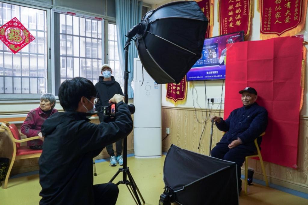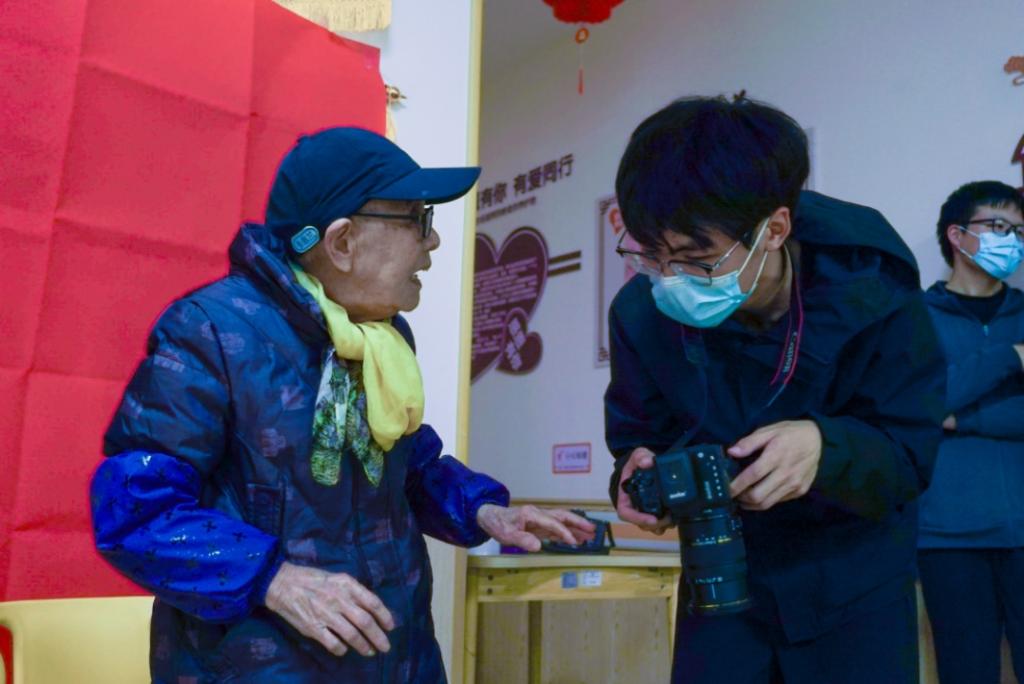 青志协和宣传部志愿者为老人们拍摄证件照。在志愿者的搀扶下,老人们坐在镜头前。起初老人们难免有些拘谨和抗拒,但在工作人员和志愿者们耐心的安慰鼓励下慢慢放下心防。志愿者们一边为老人整理衣物,一边安慰着老人,让老人们都露出了轻松愉快的笑容。摄影的志愿者也敏锐地捕捉到了这些美好的瞬间,将其定格在镜头中。渐渐地,更多老人参与到了拍摄中。有的老人拍摄结束后,还仔细端详镜头里的自己,脸上绽放出灿烂的笑容,并叮嘱志愿者们要将打印好的照片送来,好让他们珍藏。