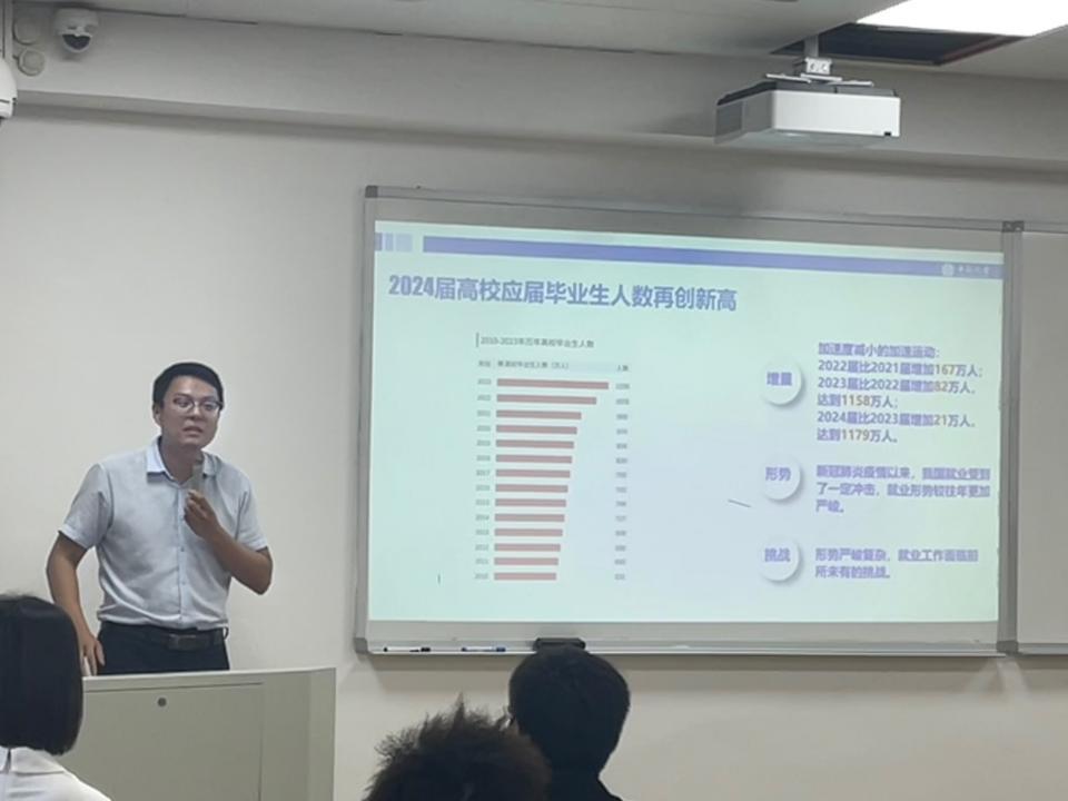 辅导员连选老师以《就业形势与求职准备》为主题作了辅导报告。他首先围绕就业形势与求职准备,重点分析了九游会