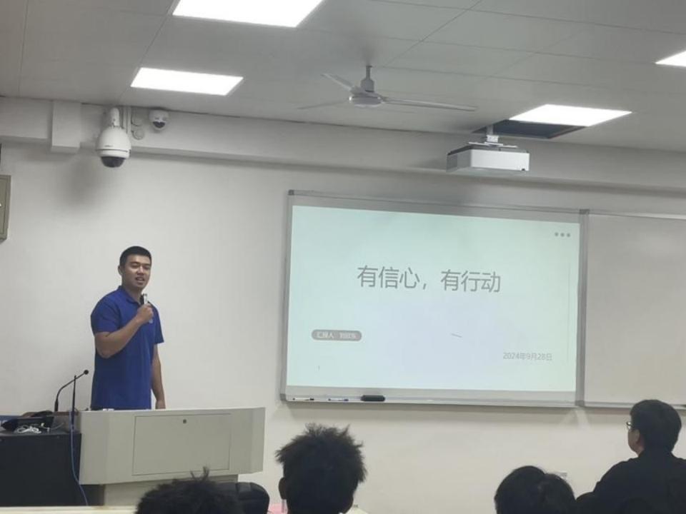 “求职达人”、20级优秀校友刘欣东分享了自己的求职故事。他认为在求职过程中有信心和有行动是关键。首先要有信心,相信自己是一个优秀的人,大方自信地展示自己。其次要有行动,在秋招中,应当勇于迈出步伐,积极投递简历,相信大家定能拿到心仪的offer。