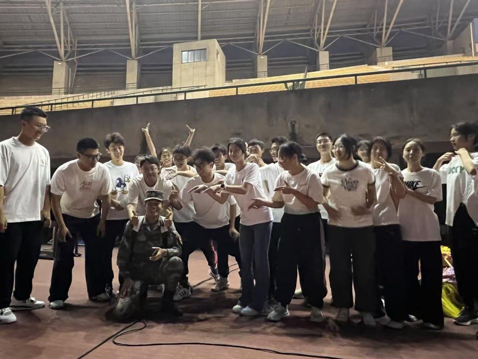 大家对擒敌拳和分列式的训练流程已经十分熟悉,状态渐入佳境。分列式方阵中,同学们踢出高度一致的正步,甩出平直有力的手臂。擒敌拳方阵中,他们打拳连贯,动作平滑,“杀”声清脆。每一个人都彻底投入其中,融入并享受训练过程。