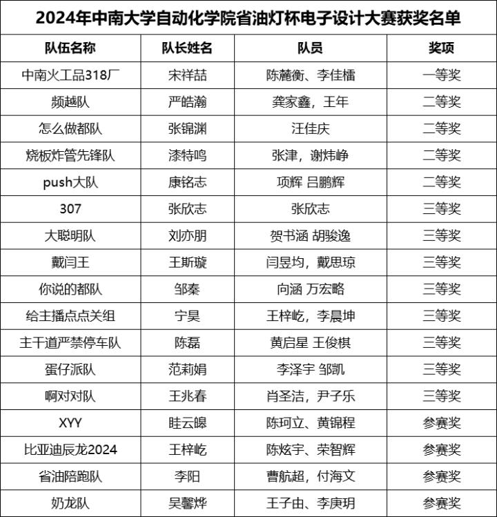 随着大赛的圆满结束,宋祥喆带领的中南火工318厂队伍荣获一等奖,严皓翰率领的频越队等四支队伍获得了二等奖,张欣志率领的307队等八支队伍获得了三等奖,其余四支队伍获得了参赛奖。