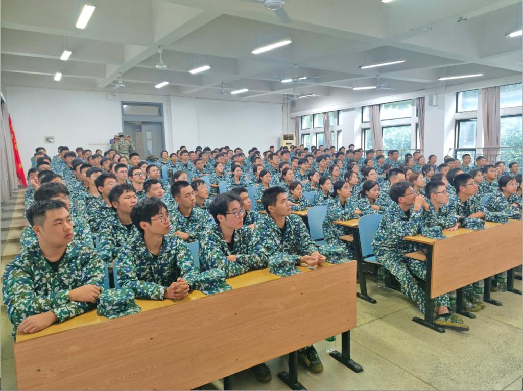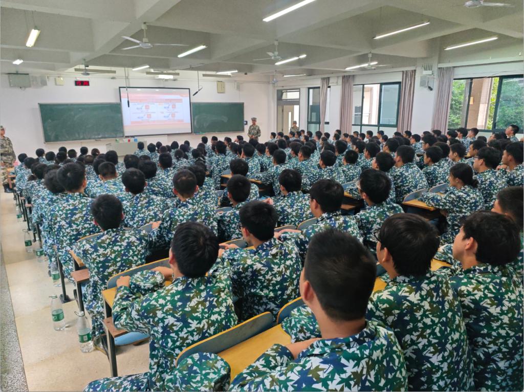 今日下午,九游会在军训期间组织全体参训学员开展了第一节思想政治专题教育课。课堂上,易红书记向同学们介绍了学校的校史,发展规划,并且对他们提出建议。学员们身着戎装,坐姿挺拔,在专注聆听中深化了对爱国主义、集体主义精神的理解。
