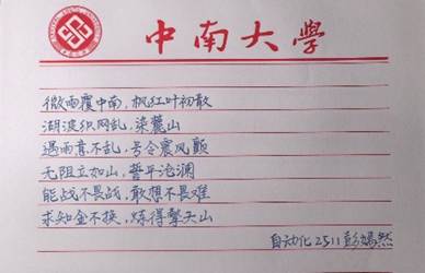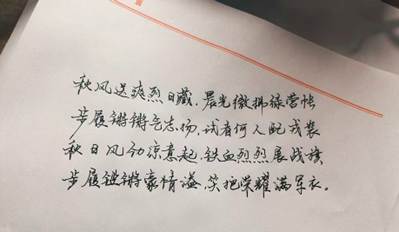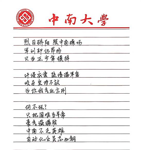 笔落惊风雨,墨染军魂色!训练间隙疾书的“自强不息”、晚霞之下劲书的“保家卫国”,非寻常笔墨,而是迷彩少年以笔为枪刻进岁月的铁血誓言——让军训炽热有了厚重承载,让青春锋芒化作传世墨章。这纸磅礴气韵当为征途号角:愿学子以笔绘山河、以志护家国,让笔墨赤诚与军训担当,永在时代浪潮中奔涌!