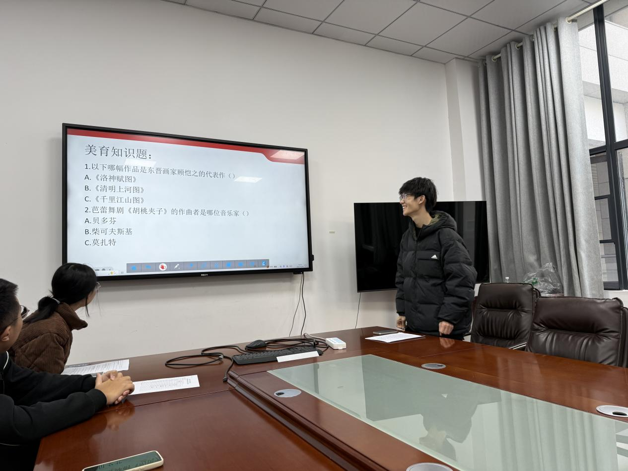 随后,支部在信息楼216开展艺术发展脉络、党的创新理论知识竞赛。通过这种互动性、竞技性兼备的形式,党员同志们在巩固既有知识体系的同时,有效拓宽了文化艺术视野,实现了知识储备与党性修养的双重提升。支部党员刘宇欣微党课宣讲,对“十五五”规划进行解读。
