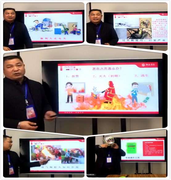 吴教官结合近年来发生的火灾案例,以文字及图片形式生动地阐述了普及消防安全知识提升消防意识的重要性,同时从“防火”、“灭火”、“逃生”、“自救”四个方面详细介绍了火灾的形成过程、自救逃生方法以及灭火器种类和操作方法等一系列消防安全知识。