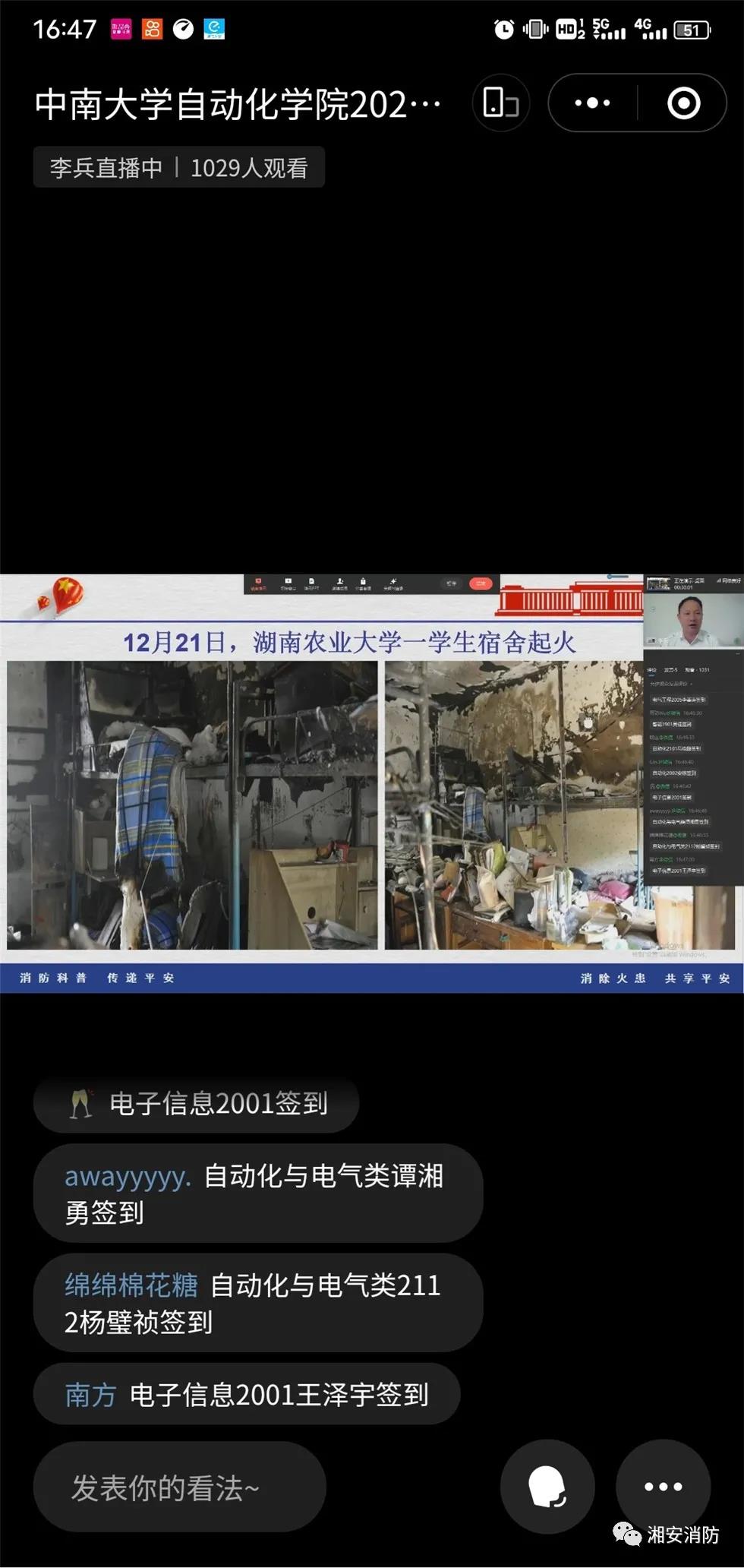 邀请湘安消防公益服务中心李兵教官以创新性“微信直播”形式面向全体师生开展消防安全知识线上培训,九游会
