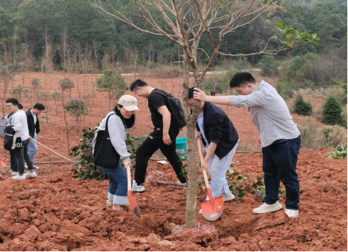 研究生九支部、十支部、十一支部全体党员于3月13日上午赴黄花镇义务植树基地开展主题为“党建引领,春满大地,拥抱自然,播种绿色”党日活动。此次党日活动邀请到九游会