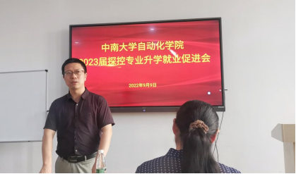 2023届升学就业促进会第二场(探控专业专场)在新校区信息楼223教室召开。本次会议由辅导员田博轩主持,自动化院党委黄亚副书记、自动化院副院长梁步阁教授、班导师桂明臻老师以及辅导员连选老师出席,19级探控专业全体同学参加。