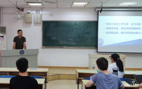 的升学就业总体情况和电子信息工程专业的相关情况,分析了同学们面临的升学、就业形势,以丰富的数据说明展现我们面临的机遇与挑战。她说,在师生共同努力下,2022届电子信息工程专业就业率创下了全校第一的好成绩,有信心、有实力的同学们要坚定考研信念、直至成功,就业的同学们一定不能错过秋招,彷徨的同学要理性决策,选择最适合自己的道路。