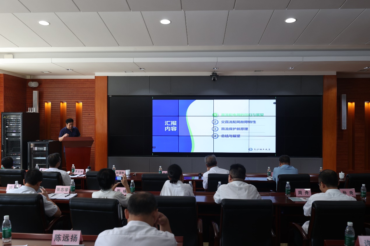 副院长粟梅教授、国网湖南电科院唐海国博士、中车株洲电力机车研究所张志学教高、湖南大学郭祺副教授、长沙理工大学匡文凯老师五名专家依次就电力电子设备柔性控制技术及在电网中应用等方面的研究成果做了主题报告,进行了解读分享和探讨交流。活动中,湖南省电力有限公司公司总工程师梁剑与上述五位主讲专家们深入探讨电力电子设备技术及其在电网中的应用场景。他指出,电网企业未来面临“保供”和“转型”两大挑战,电网数字化转型和电力电子控制技术是构建新型电力系统的关键。参会专家的主题报告在新型配电网电力电子支撑方面带来很大启发,梁剑总工程师表示希望以本次活动为契机,结合湖南省电力有限公司“双创中心”的建立,加强与各参会单位的科技创新合作,从电网实际问题和需求出发,催生一批具有引领性、带动性的创新型技术成果,并转化到实际应用中,共同推进湖南电网的发展。