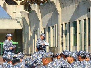 全体新生前往新校区体育场进行日常训练,今天的训练项目有:齐步行进与立定以及正步行进。军训第三天是一个中转站,同学们逐渐感受到军训的艰辛与快乐。