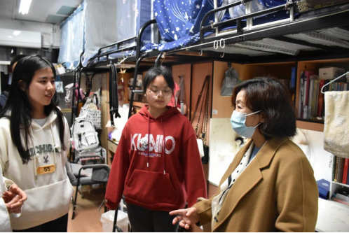 在三楼、四楼、五楼,阳院长走过一间间宿舍,迎着同学们一张张青春洋溢的笑脸,细心回答同学们的提问,给即将迈上人生新征程的同学们送去鼓励与祝福。