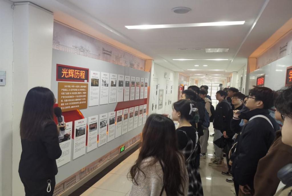 首先,在讲解员的带领下,团学会学生骨干们回顾了中国共产党一路走来的光辉历程。从一大的十三名代表到如今的9600多万名党员,中国人民在党的领导下向中华民族伟大复兴稳步前进。随后,团学会学生骨干们跟随讲解员重温了习近平总书记在党的二十大报告中概括的对党和人民事业具有重大现实意义和深远历史意义的三件大事,不仅是新时代十年党带领人民走向胜利、取得成就的历史性记录,更激励着我们矢志不渝,接续奋斗。