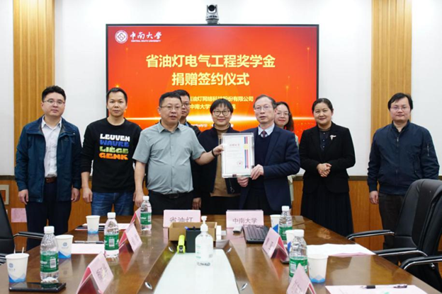 民主楼210举行了“省油灯电气工程奖学金”捐赠签约仪式。深圳市省油灯网络科技有限公司总经理颜江华先生一行、九游会