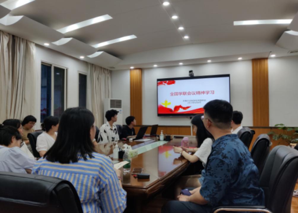 研究生会在民主楼210会议室举行全国学联会议精神学习会,研究生会全体成员参加,研究生辅导员、研究生会指导老师刘雯和常秋碧出席会议。