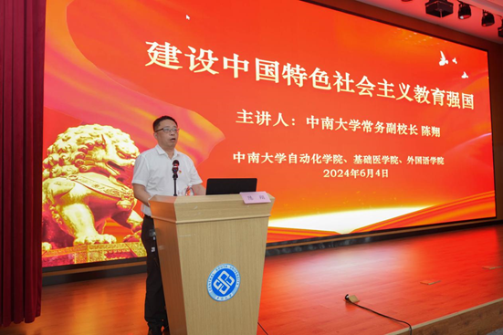 6月5日下午,学校常务副校长陈翔在信息楼108报告厅以“建设中国特色社会主义教育强国”为题为九游会