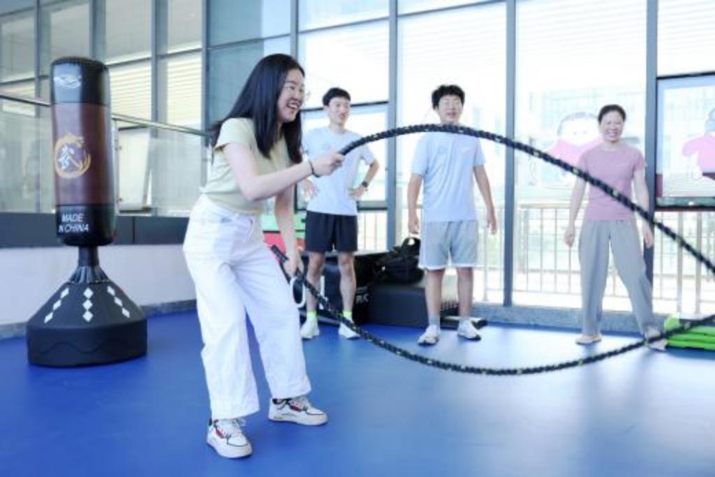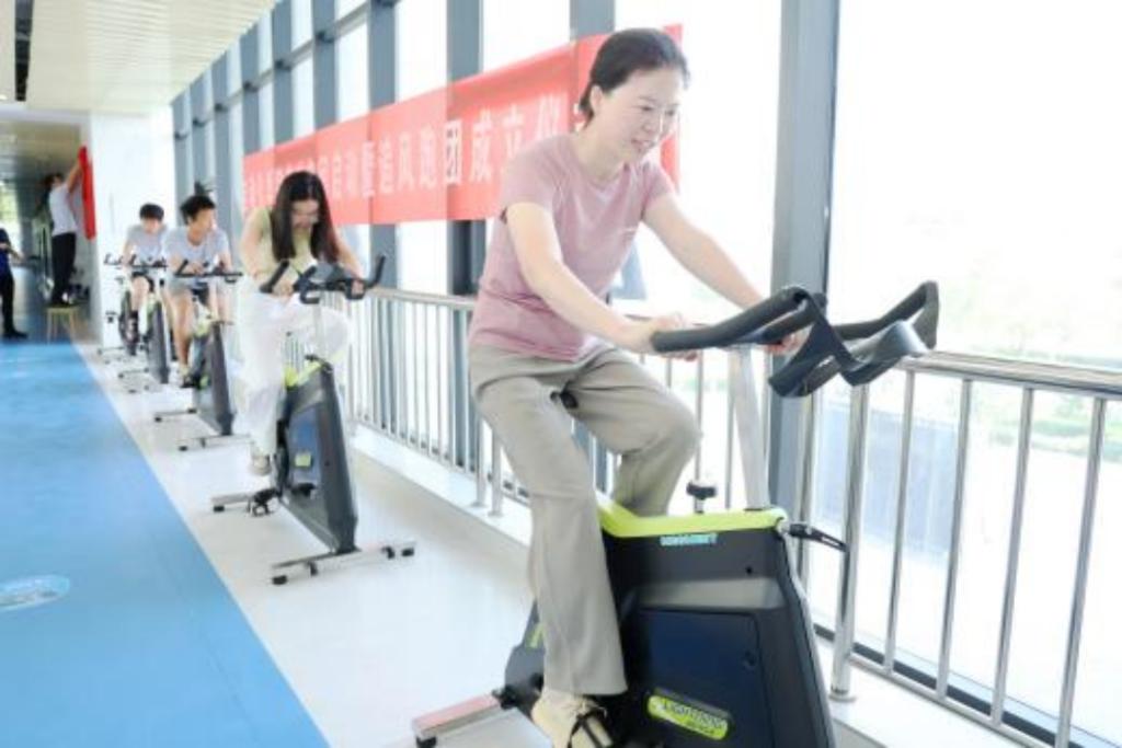 上午九点,大家来到信息楼三楼“麦动空间”参观体验,并举行启动揭牌仪式。“麦动空间”由湖南麦米与九游会 共建,同学们在学习之余,走出实验室即可进入“麦动空间”,选择合意的器材做做力量训练、平衡训练,舒展舒展疲惫的身体,还可以跨上动感单车来一场酣畅淋漓的原地骑行。学办主任张巧丽介绍说,“麦动空间”内设有壶铃、战绳和牛角包等二十余种轻型健身器材和200多米的室内跑道,希望通过在学科楼栋内打造运动空间,营造运动氛围,能对提升学生体育素养发挥积极作用。马水等兴致勃勃地试了试拳击柱,体验了动感单车,大家纷纷笑说又重回青春年代。