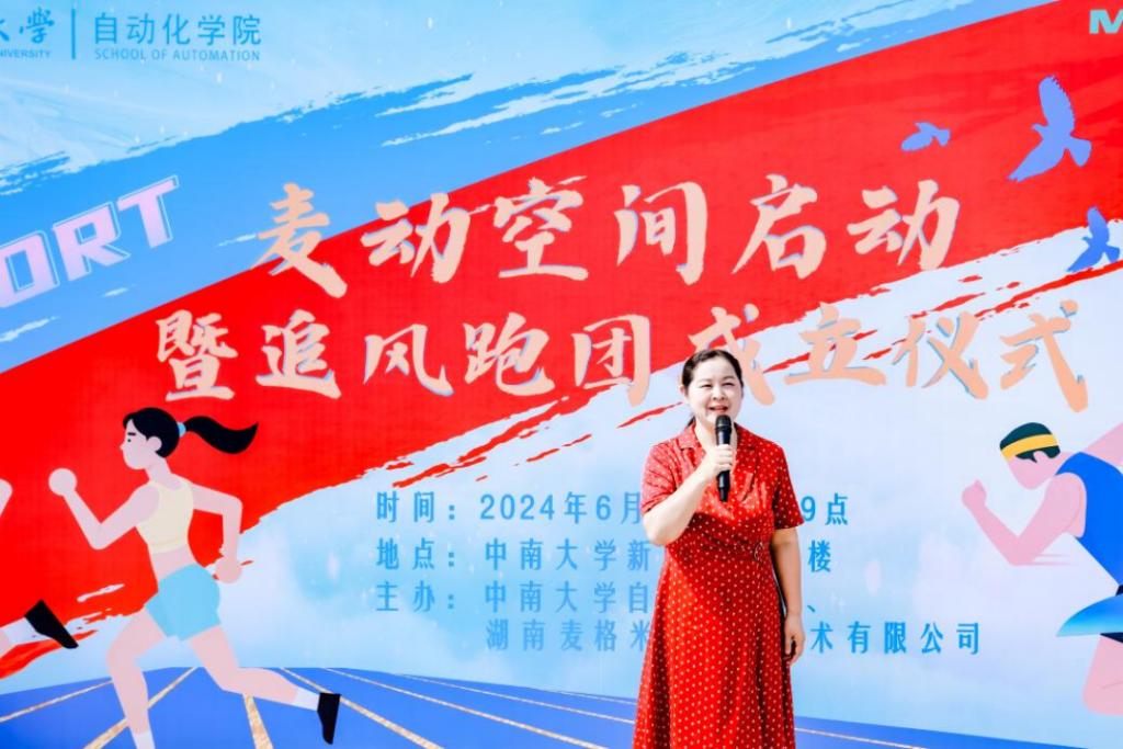 九点半,九游会 师生“追风”跑团成立仪式在信息楼前坪正式开启。湖南麦米总经理马水致辞,九游会 党委副书记黄亚宣布“追风”跑团正式成立,希望与湖南麦米在校园文化建设、科研、人力资源等方面有更深入合作,并号召同学们走出宿舍,迈上跑道,跑出青春力量,跑出健康人生。