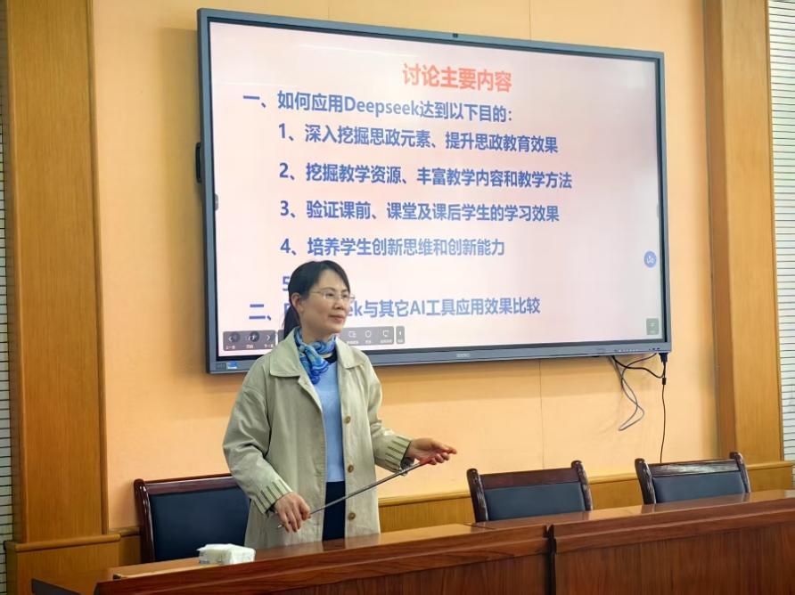 本次研讨围绕如何应用Deepseek或其它AI工具挖掘思政元素和教学资源,丰富教学内容和教学方法,提升思政教育效果,培养学生创新思维和创新能力。