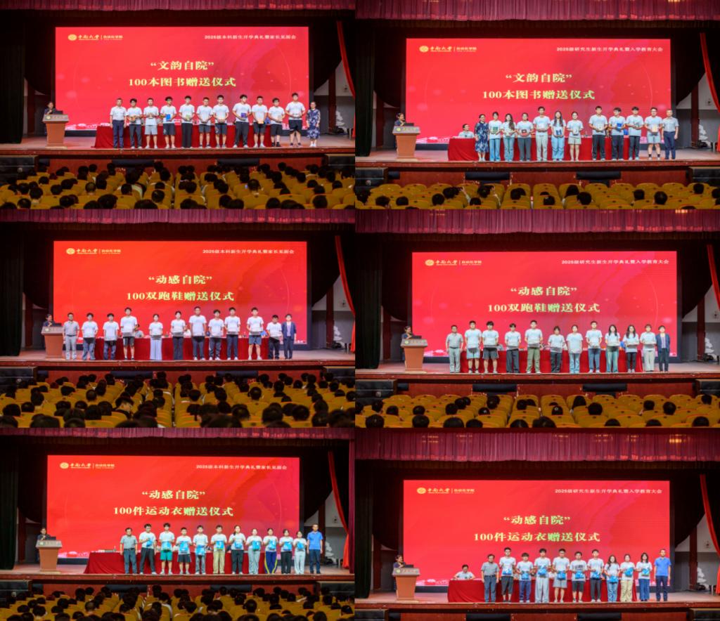 “文韵自院”学生阅读素养提升体系和“活力自院”学生体育素养提升体系,并现场抽取名单向新生送出100本经典著作、100双跑鞋、100件运动衣,鼓励同学们以经典为友、与运动为伴,让阅读和运动成为终身习惯。