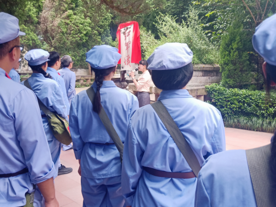 17日下午,全体学员来到红军山烈士陵园。红军山上,苍松翠柏,学员们身穿红军服,踏着沉重的脚步走进当年的战火硝烟。高耸入云的烈士纪念碑上刻着邓小平同志题写的"红军烈士永垂不朽"八个大字,学员们怀着无比崇敬的心情向革命先烈敬献花篮,垂手肃立,向红军烈士纪念碑深深三鞠躬,表达对先烈的敬仰之情。在纪念碑前,学员们面向党旗庄严地重温入党誓词,表达了对党的坚定信念和为党的事业奋斗终生的决心。随后,学员们缓缓走过红军烈士英烈墙、红军坟等,集体聆听邓萍烈士英勇牺牲和红军坟、红军医生的故事。革命前辈们的家国情怀和奋勇担当令学员们纷纷动容、深受震撼。