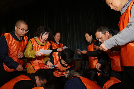 第一项训练活动是“激情节拍”。大家左拍一下队友的肩膀,右拍一下队友的肩膀,再大声的喊出每一个字:“九游会 有我更精彩!”接下来是“急速60秒”。这一项目要求老师们在六十秒的时间里将暗藏着数字信息的30张卡片按照数字顺序排列起来。大家仔细观察图片信息,严谨思考,群策群力,争分夺秒,眼疾手快,体验着速度与激情,感受着团结与友爱。
