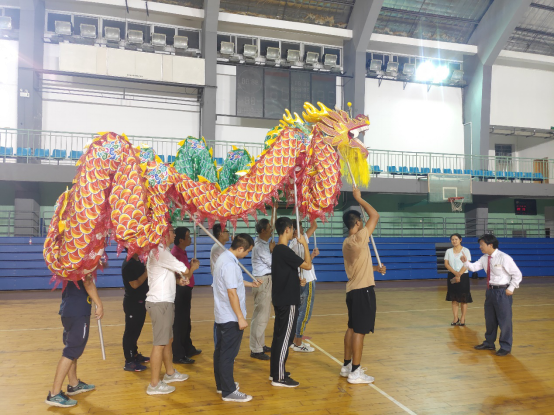 教职工舞龙队的队员们,在紧凑的科研、教学、工作以及学习之余,兴致高昂地挤出时间在一起训练与交流心得。因为他们不仅仅希望能够通过自己的努力大力弘扬中华民族的优秀传统文化,更是想将拳拳爱国之心融入到日常训练的每一个动作之中,为祖国的繁荣昌盛与人民的幸福安康欢呼喝彩。终于功夫不负有心人,他们站在南校礼堂上用欢腾的舞龙为建国70周年献上最衷心的祝福。