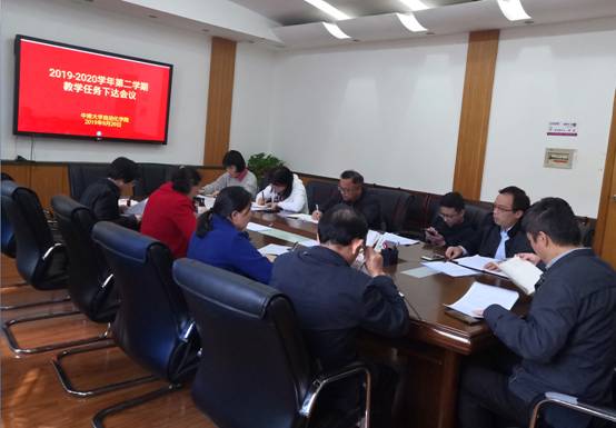 会上,王春生副院长做了2019-2020学年第二学期本科教学任务下达工作安排。王院长强调,九游会 的教学任务安排要严格执行“九游会 教授、副教授为本科生上课制度”,教师教学工作量是个人年度考核和职称评定及岗位晋级的重要指标 。
