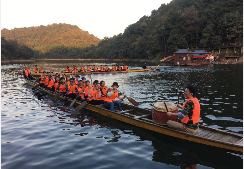 午餐后,大家迫不及待的投入到“丛林穿越”的团队协作游戏中,活动中同学们感受到了惊险的高空探索体验。随后的“勇闯玻璃桥”,则让大家在高空中俯瞰整个石燕湖景区。高山丛林之美,尽收眼底。最后一项龙舟大赛集体合作项目,则充分调动了大家的积极性。在大家齐心协力的配合下,水上龙舟活动既充满了竞技意味,又显现了团队的合作性与凝聚力。