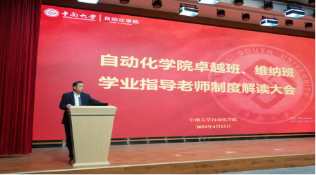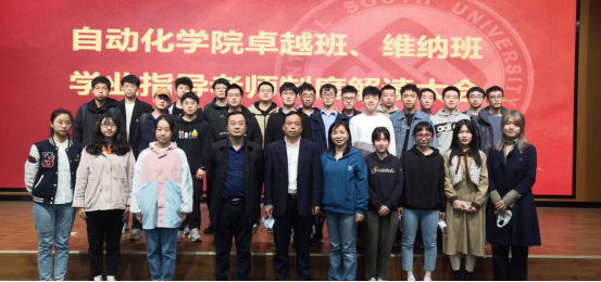 卓越班、维纳班学业指导老师制度解读大会在新校区信息楼108报告厅顺利召开。学院王春生副院长,人工智能系王勇主任、自动化系董密书记、电气工程系李志勇书记、电子信息系陈宁书记,20级维纳班班导师李繁飙副教授、21级卓越班班导师周灿副教授及全体同学参加会议。会议由自动化系主任蒋朝辉教授主持。