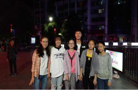 图为杨潇与马文艳(左一)在泸溪县城与小摄影师的合影