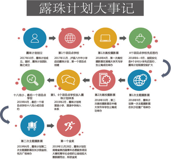 2017年11月,利用太阳基金会在泸溪地方的基础,他们得到了当地学校和当地政府的支持。几经调研之后,他们与八什坪小学达成协议,确定了八什坪小学为露珠计划项目点学校,成立了露珠计划的第一个摄影兴趣班。这也是露珠计划迈出的第一步!