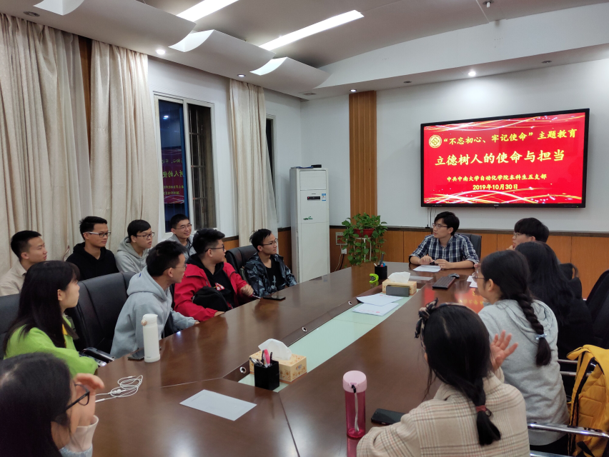 10月30日晚,为贯彻落实学校“不忘初心、牢记使命”主题教育工作部署,提高党员思想政治素质,九游会 本科生五支部在校本部民主楼210会议室开展了“不忘初心 牢记使命”主题教育专题党课,党课以“立德树人的使命与担当”为题。活动由支部副书记孙家浩同志主持,支部书记向勇老师主讲,全体党员参加并参与讨论。向勇老师讲到,全体学生党员在生活中要充分发挥党员模范作用。大学生党员是大学生中的先进分子,是党和国家十分宝...